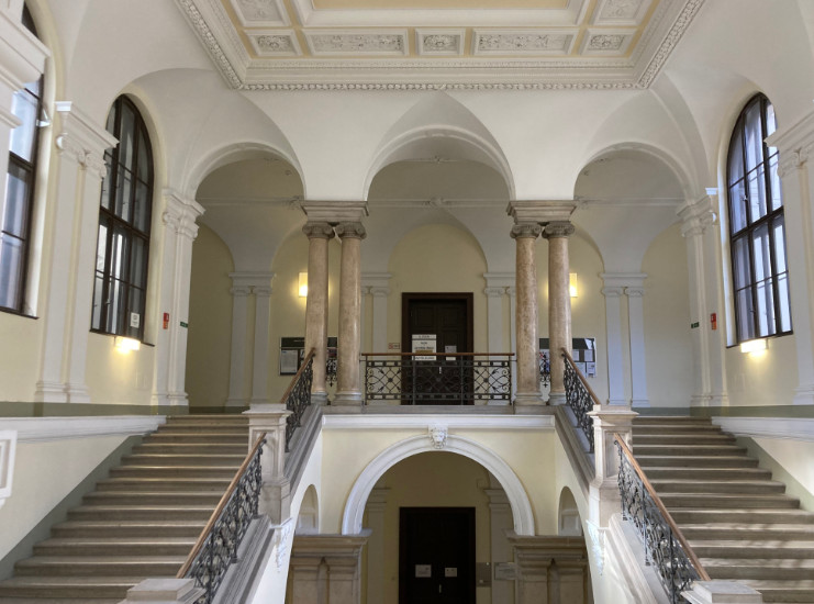 All structural alterations will be carried out in accordance with heritage protection requirements and with consideration for both the interior and exterior appearance of the ensemble. In the existing building, continuous horizontal circulation across all rooms on each floor is not currently provided. By adding a supplementary gallery along the courtyard side (in front of the northeast wing), a continuous walkway is created on all levels, contributing to the overall functional enhancement of the building. The new gallery will feature a transparent façade that preserves views of the original historic façade and will be greened using a climbing structure.