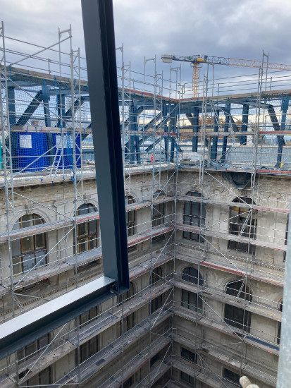 The annex building will be stripped back to its structural core across all floors in order to create space for large seminar rooms. The annex staircase will be modified, and a new connection to the main building on all levels is incorporated into the design.