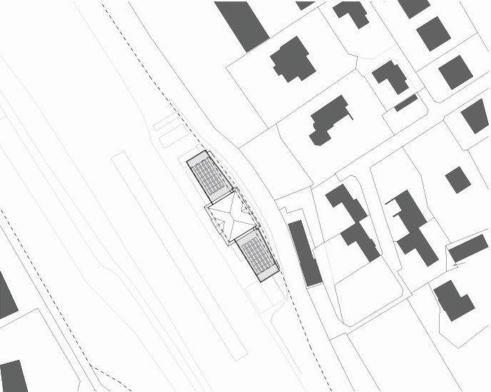 In order to cover the increased need for office space, the side wings will be increased by one floor. The existing hipped roofs will be demolished, the extension will be built on the existing ceilings and walls in a lightweight construction made of glued laminated timber elements combined with steel constructions. A new external staircase will be added to the north-west wing, which will serve as a connection between the offices and as an additional escape staircase. The facade of the new, cantilevered structure consists of continuous ribbon windows (aluminum and glass construction) with sun protection elements made of horizontal, rotatable slats and a curtained, horizontally structured metal facade made of patinated titanium zinc sheet. The historic existing facade is being renovated and returned to its original colour.